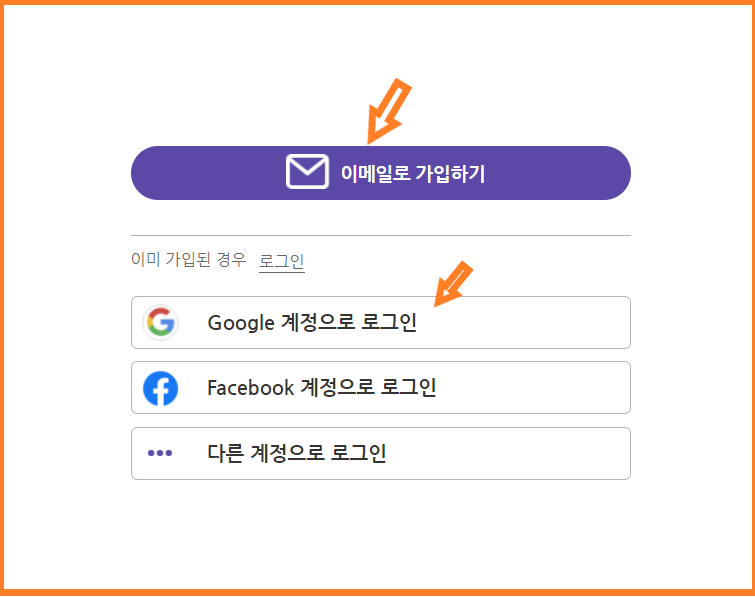 한컴 스페이스 사이트에서는 첫 화면 왼쪽에 놓여 있는 '무료로 시작하기'를 클릭하면 회원가입 안내가 나오게 됩니다. 한컴 스페이스의 말랑말랑을 이용하려면 먼저 회원가입부터 해야 합니다. 좀 귀찮은 부분이지만 유용한 서비스가 많이 있으니 회원 가입하도록 합니다. 회원가입은 구글 계정이나 SNS 계정을 이용하면 쉽고 간단하게 할 수 있습니다.